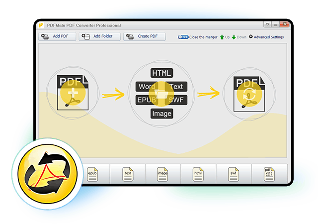 Convert PDF files to EPUB, TXT, DOC, IMG, HTML, SWF formats